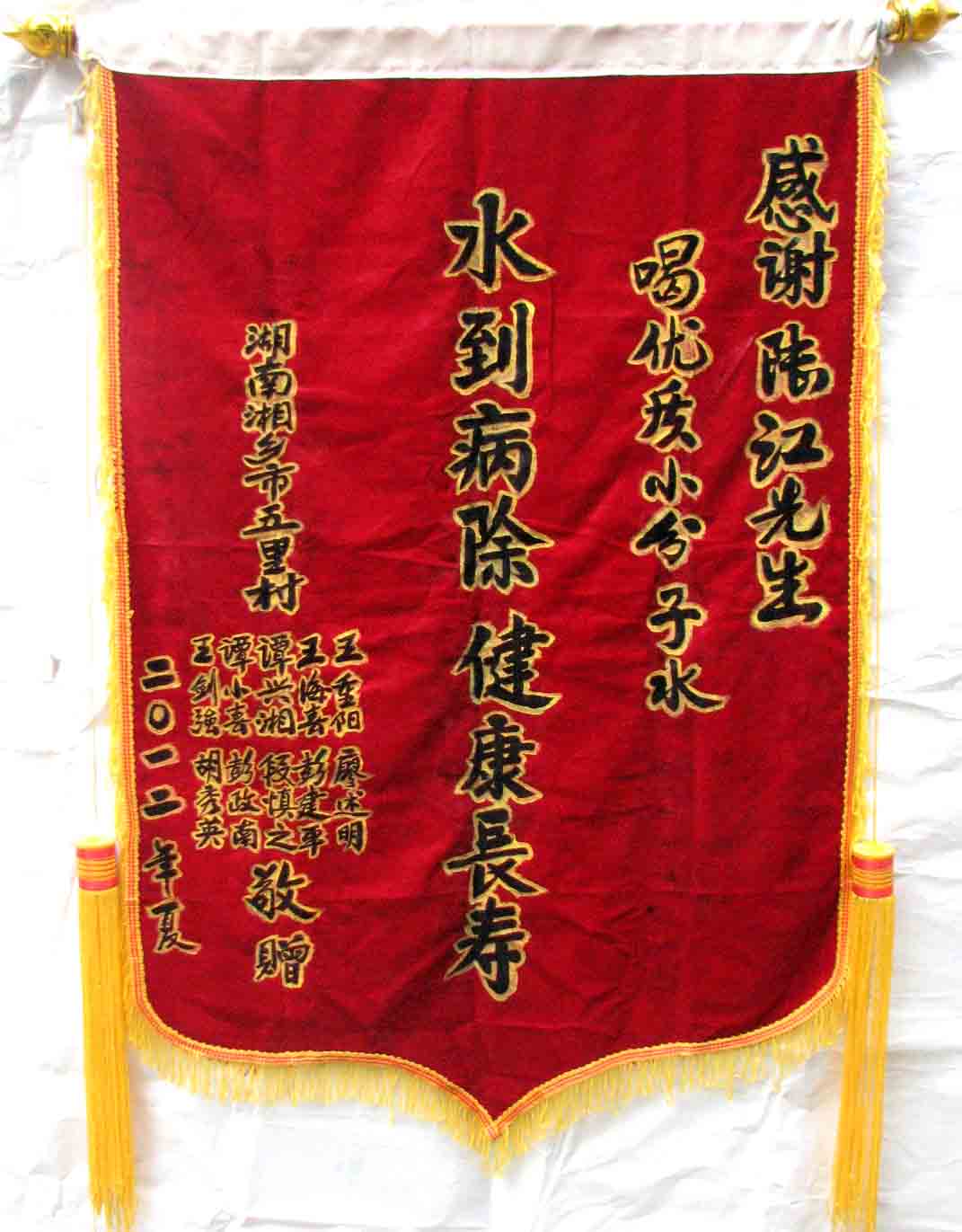 2015年潘志山主動寫一篇感想《我以親身實(shí)踐打破了冠心病、高血壓、糖尿病需終生服藥的神話》說堅持按發(fā)明人陸?江先生倡導(dǎo)的用已饑方食的方法合理膳食,我的健康狀況越來越好:糖尿病造成的視力下降有了明顯的恢復(fù),末梢神經(jīng)炎導(dǎo)致的指端潰爛現(xiàn)在完全痊愈,痔瘡自從飲用微小分子團(tuán)水半年后就再也沒有復(fù)發(fā)過,氣滯血瘀造成的嘴唇暗紫也漸漸變得紅潤,舌下靜脈黑紫消失,足背的動脈由以前的隱約感到跳動現(xiàn)在變得清晰有力。[13]潘先生披露的訣竅,一是飲用微小分子團(tuán)水給脫水細(xì)胞補(bǔ)水,二是已饑方食”養(yǎng)生智慧,患者都能做到。